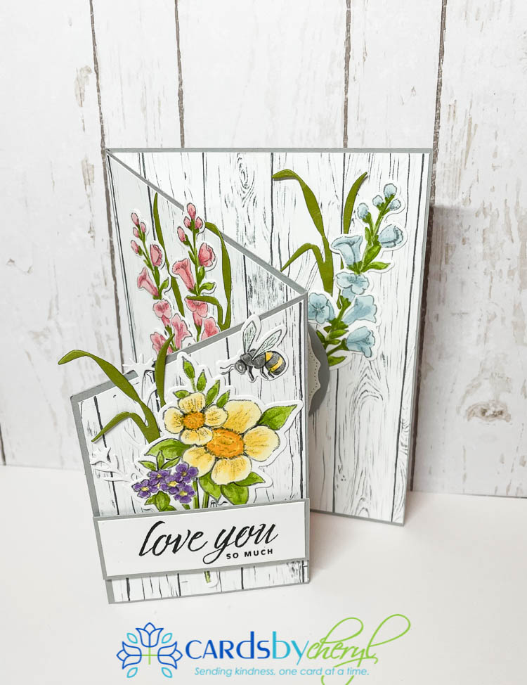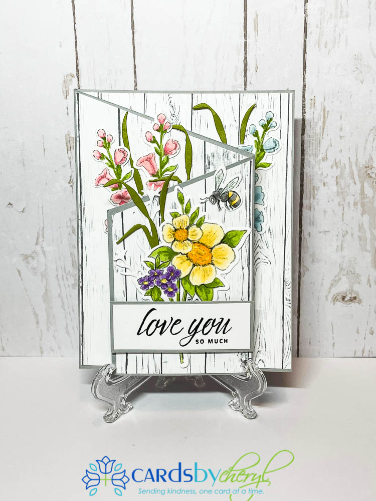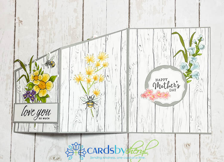 Here is what the card looks like laid out flat. I just love the bees from the Honeybee home stamp set, don’t you!?