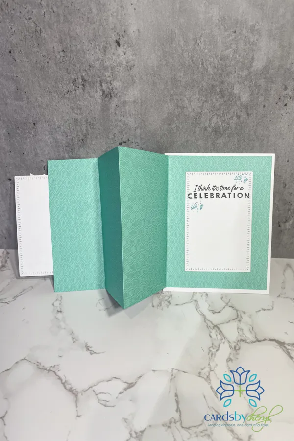 6. Use the second 2.5″ x 4″ panel and glue this down to the inside of the card, ensuring that it aligns with the front panel – so they line up seamlessly.