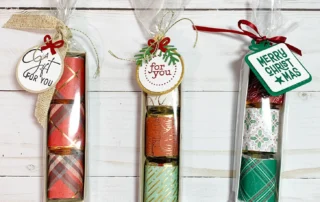 These little treat bags are so cute...they are just perfect for the holidays - but really, they are so versatile you could use them all year long. Just change up the paper you use to wrap the candies. I just filmed a quick video for you so you can learn to make them yourself. There is also a PDF file here, that shows a template to make the little paper tray that the three treats sit in. Super fast and super easy to make. Use these as stocking stuffers or add them to a gift package as a little [...]