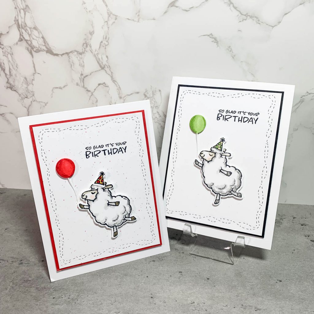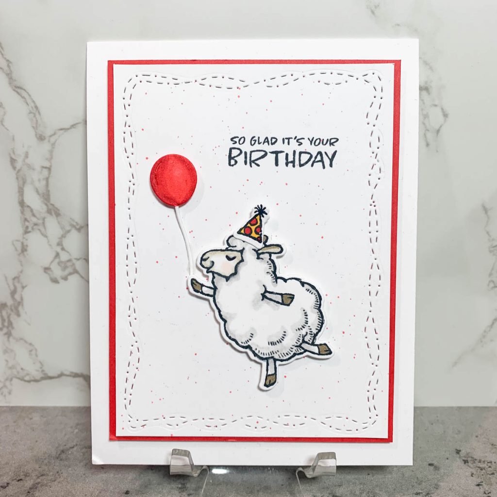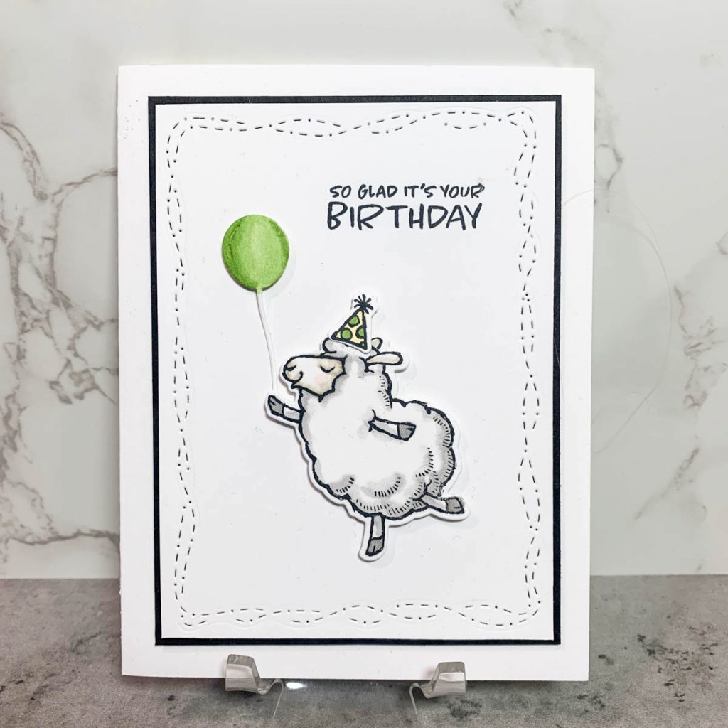 - Stamp and color the sheep, party hat & balloon. Die cut all three pieces.