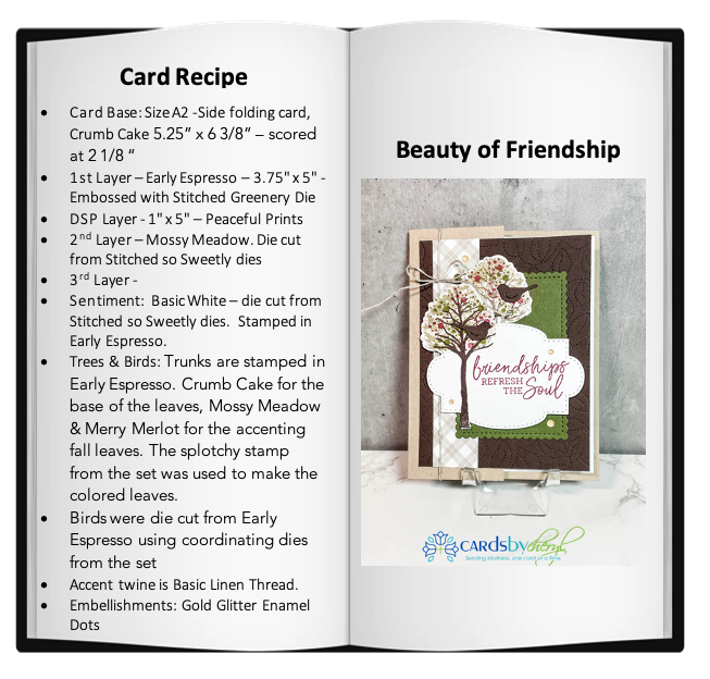 This weeks card project uses the Beauty of Friendship stamp bundle. I made this card for my Crafty Ninja Team monthly card swap and I absolutely LOVE how it turned out. I got the idea for the layout of this card from Elizabeth Price (@seeinginkspots). I love all the layers she used and so I thought I would give it a try.