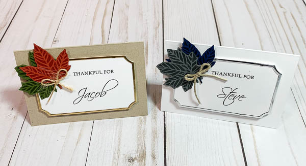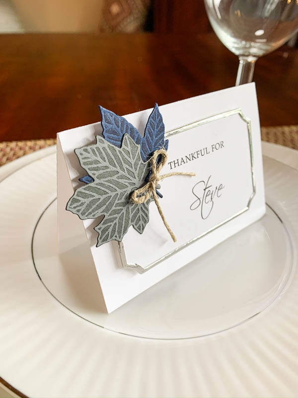 These place cards are available in two different styles….one with green/orange leaves with gold accent, and another with blue/gray leaves and silver accent. So, if you’d like to get a jump start on your planning for this Thanksgiving, you should go directly to my Etsy store and place your order!